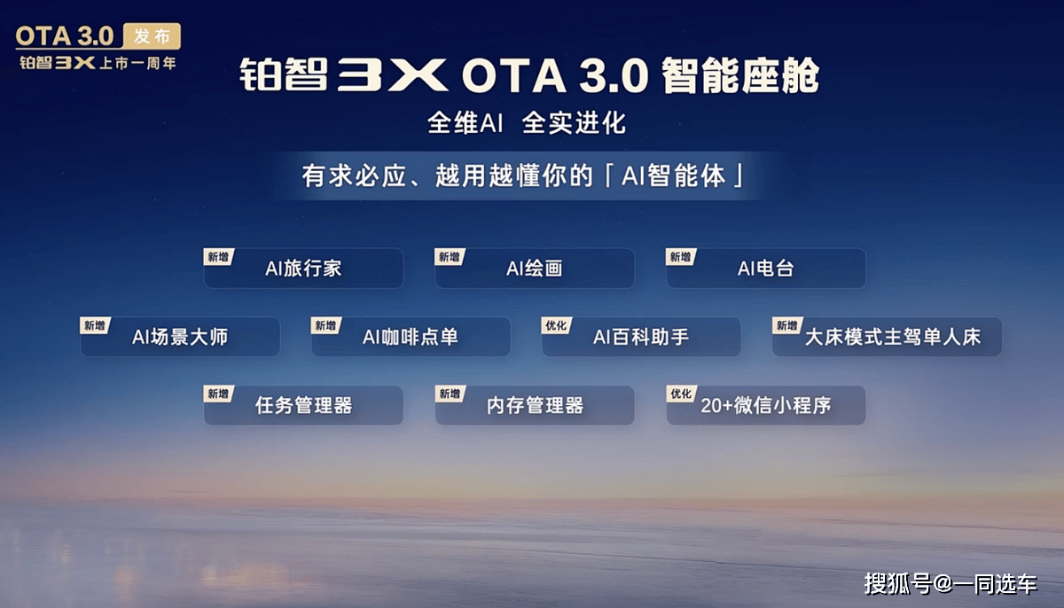 AI点咖啡功能,便化做“地陪”,新增智能驾驶辅帮单次行程演讲,新增AI旅里手、AI绘画、AI、AI场景大师、AI咖啡点单、大床模式从驾单人床、使命办理器、内存办理器。
