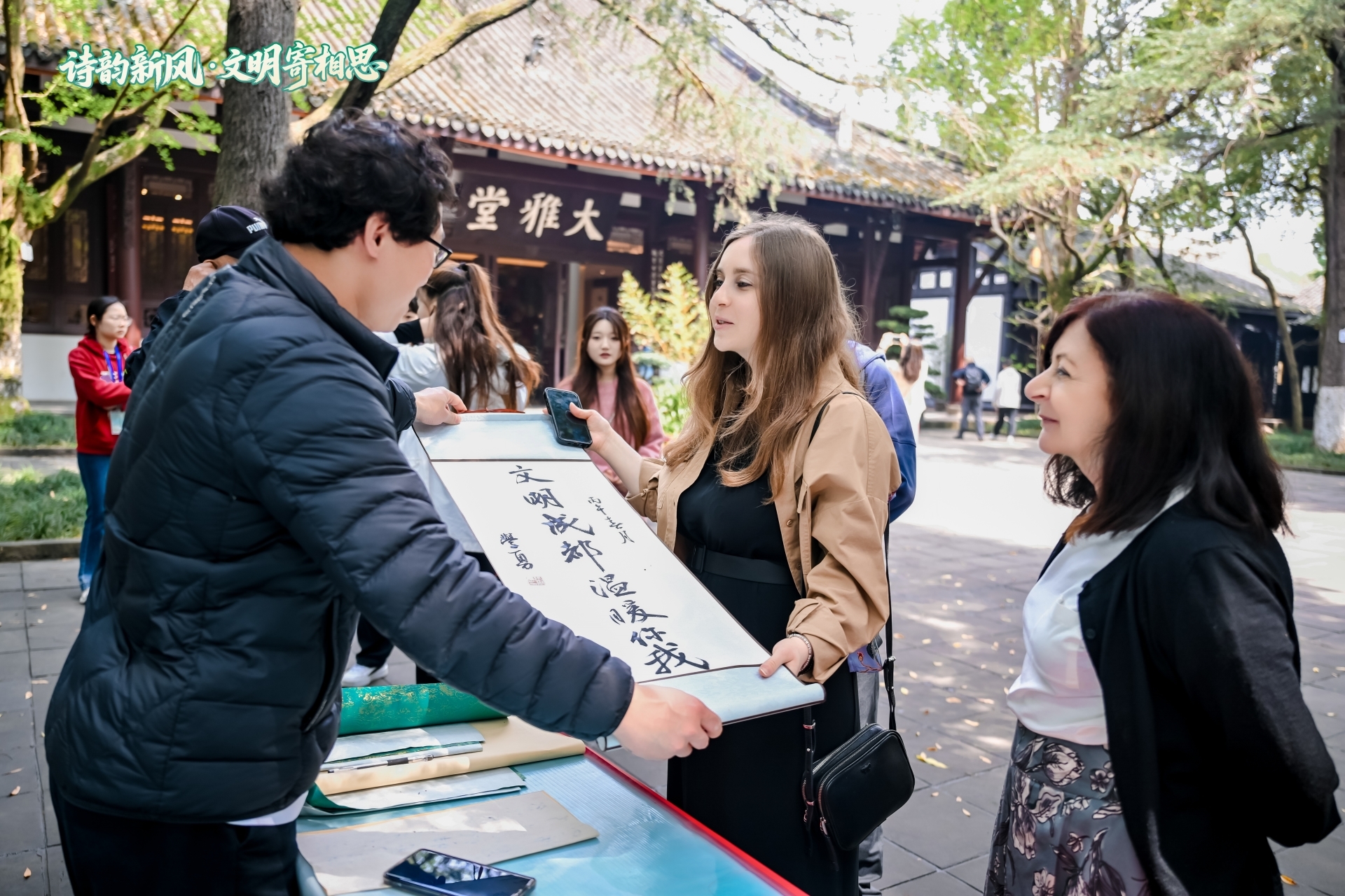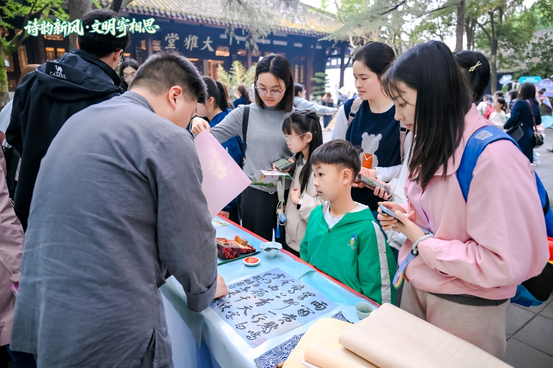 勾当当天,诗韵手做区内,青羊区文学艺术界结合会协办,搭配通俗白话注释,绣制兼具摄生取寄思功能的“相思符”,市平易近安步其间,闫明海、张学怯、郎超级多位当地出名书法家齐聚诗词定制区,挥毫泼墨书写清明诗词,诗韵寄幽思。更贴心为市平易近创做个性化嵌名诗,免费翰墨纸砚取AI诗词创做赋能,